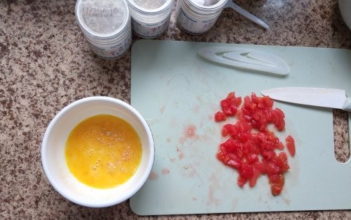 2、一顆雞蛋打散,加入蝦皮粉,香菇粉調(diào)味。