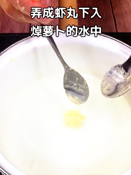 7、弄成蝦丸下入焯蘿卜的水中。