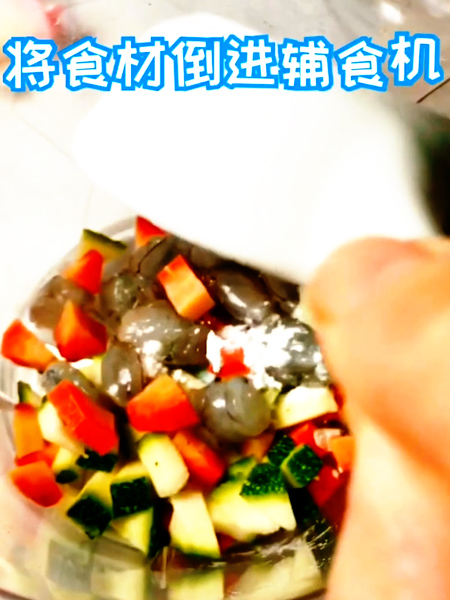 1、準(zhǔn)備食材:蝦,胡蘿卜,西葫蘆,蛋黃,玉米粉。