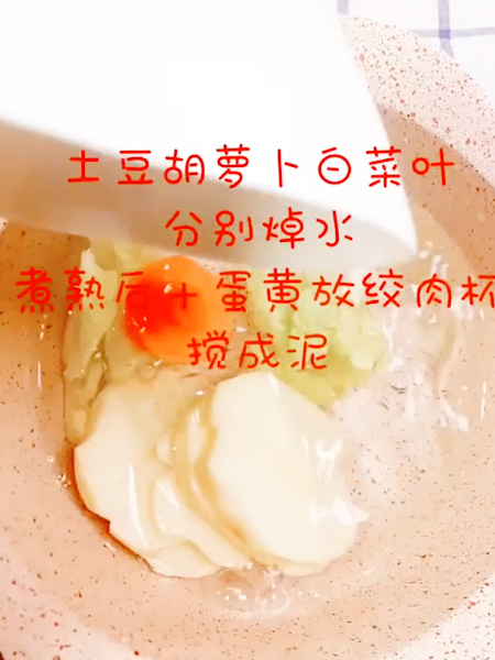 1、土豆,胡蘿卜,白菜葉分別焯水