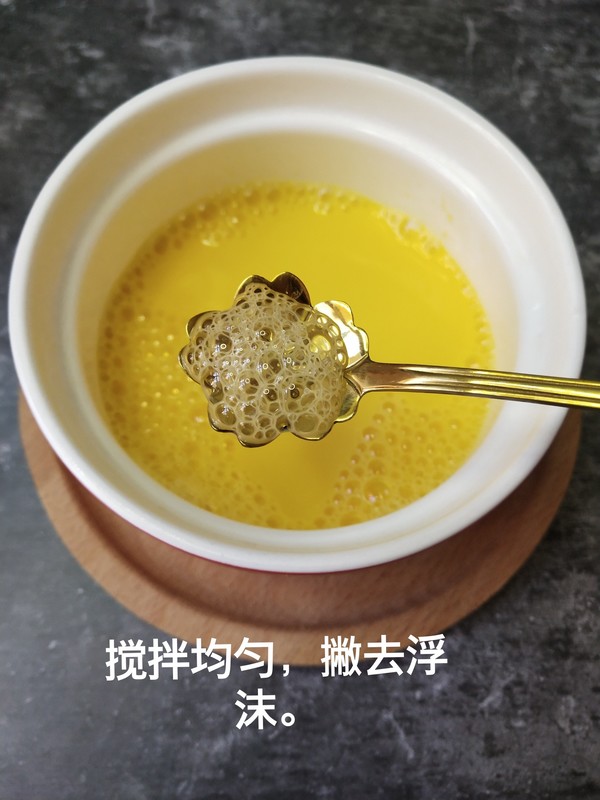 5、滴兩滴鑫百味核桃油,美味的蛋黃羹作為早餐營養(yǎng)健康。