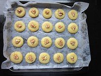 9、放入烤盤需預(yù)留空隙,烘烤過程中餅干會膨脹