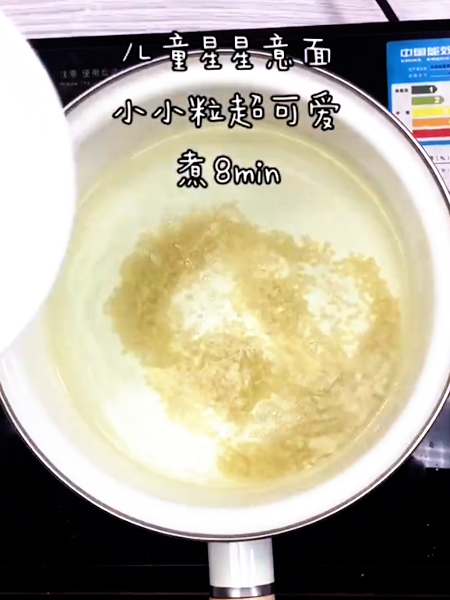 牛油果:適量、兒童星星面:適量、鮮蝦:適量、配方奶:適量、油菜(小):適量