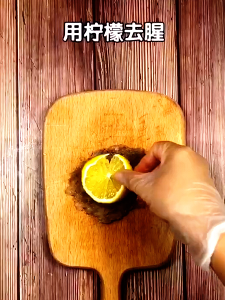 5、將蝦剁成泥,用檸檬去腥。